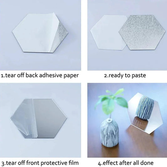 Hexagon 3D Mirror Wall Sticker Multiple Sizes DIY TV Background Living Room Stickers Wall Decor Bedroom Bathroom Home Decoration