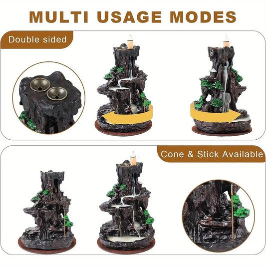 Waterfall Backflow Incense Burner with 120 Cones & 30 Sticks – Dual-Sided Aromatherapy Decor