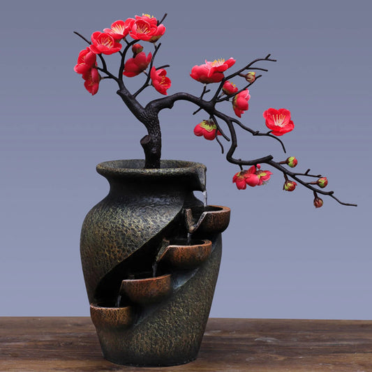 Zen LED Rock Water Fountain – Mini Mist Humidifier with Light, Retro Resin Tabletop Decor for Home & Office Relaxation