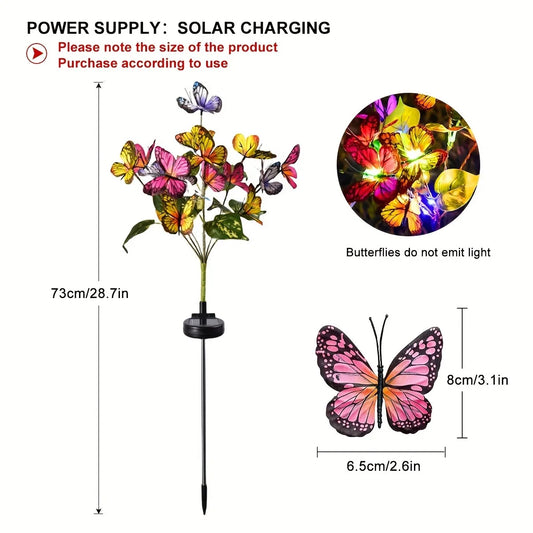 1 PC Solar-Powered Butterfly Tree Lights Featuring Lifelike Butterflies, Outdoor Solar Lawn Lights, Suitable for Garden