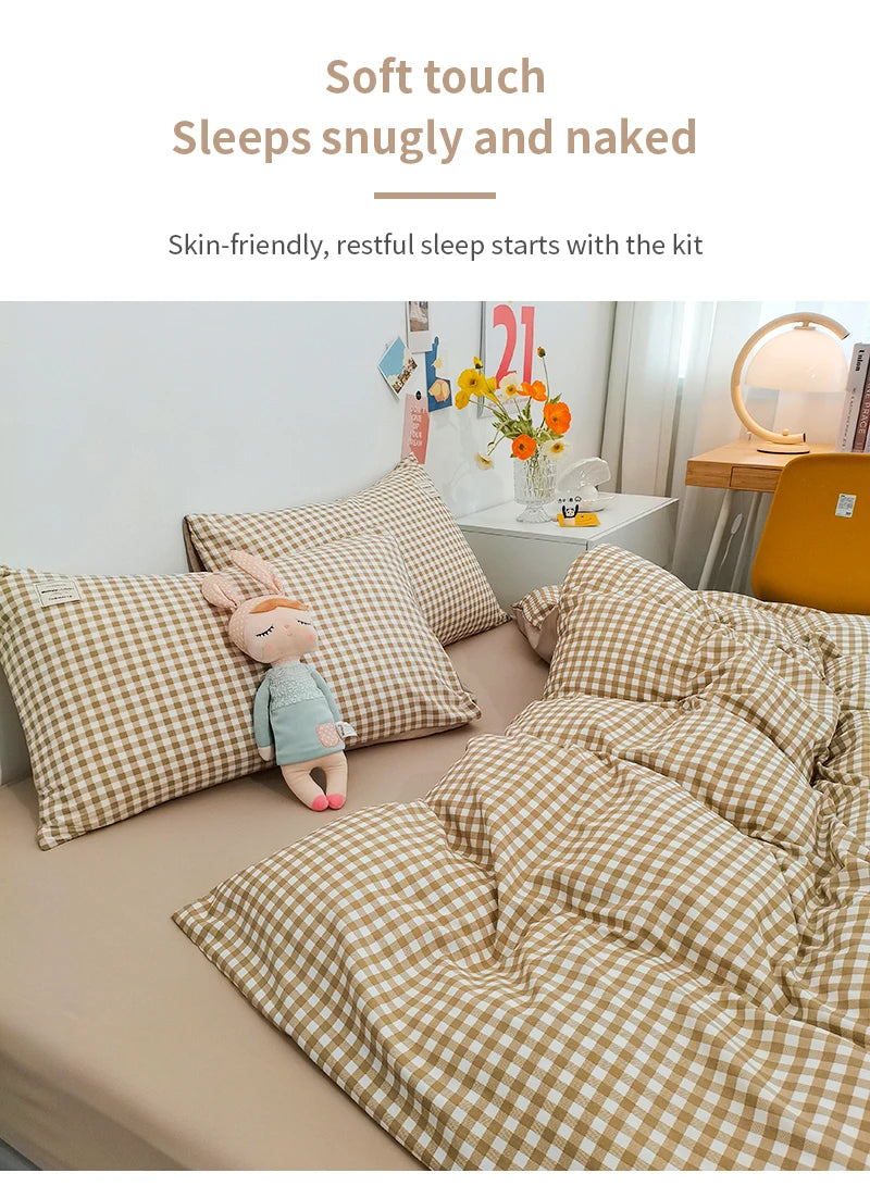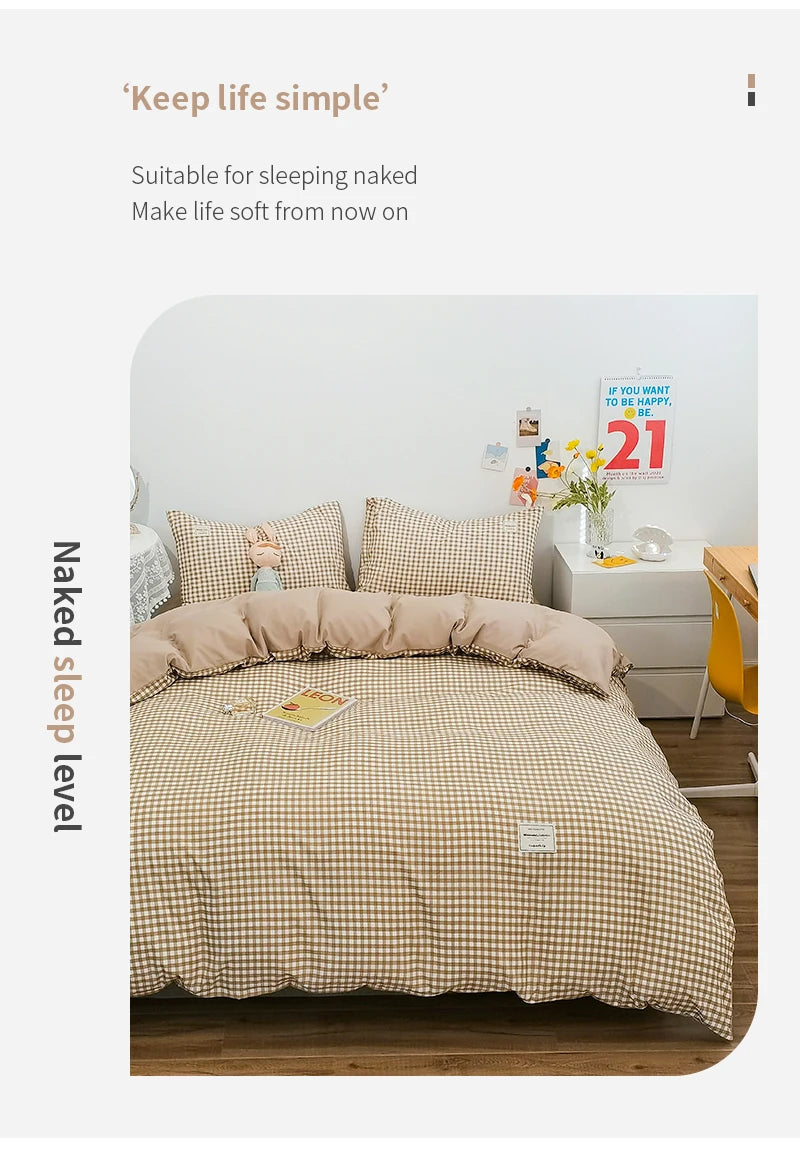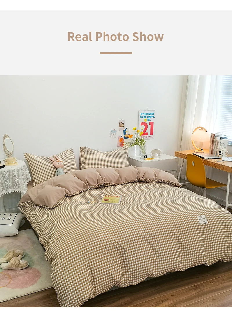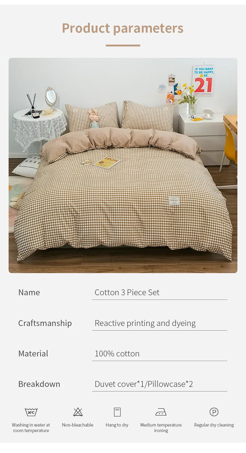 100% Cotton Duvet Cover Set,Bedding Set With Plaid Stripe,Skin Friendly Breathable,1 Duvet Cover,2 Pillowcase,Japan Simple Style