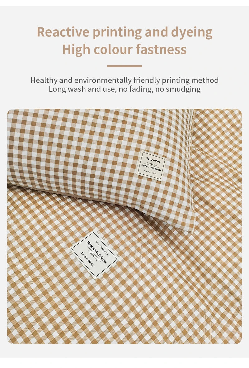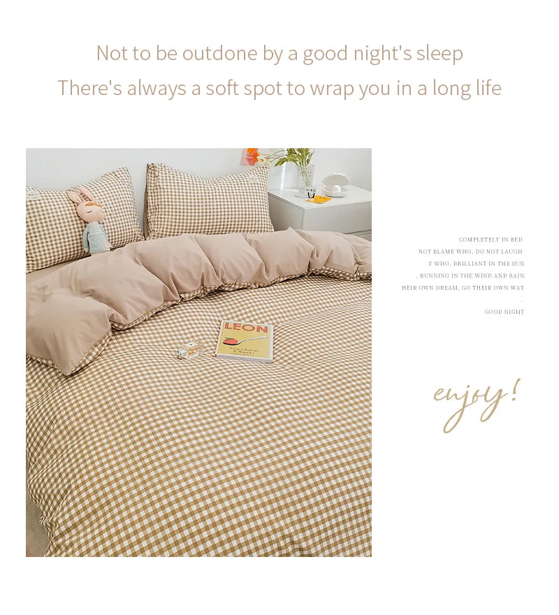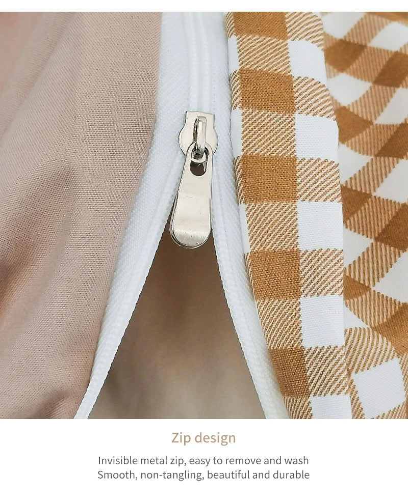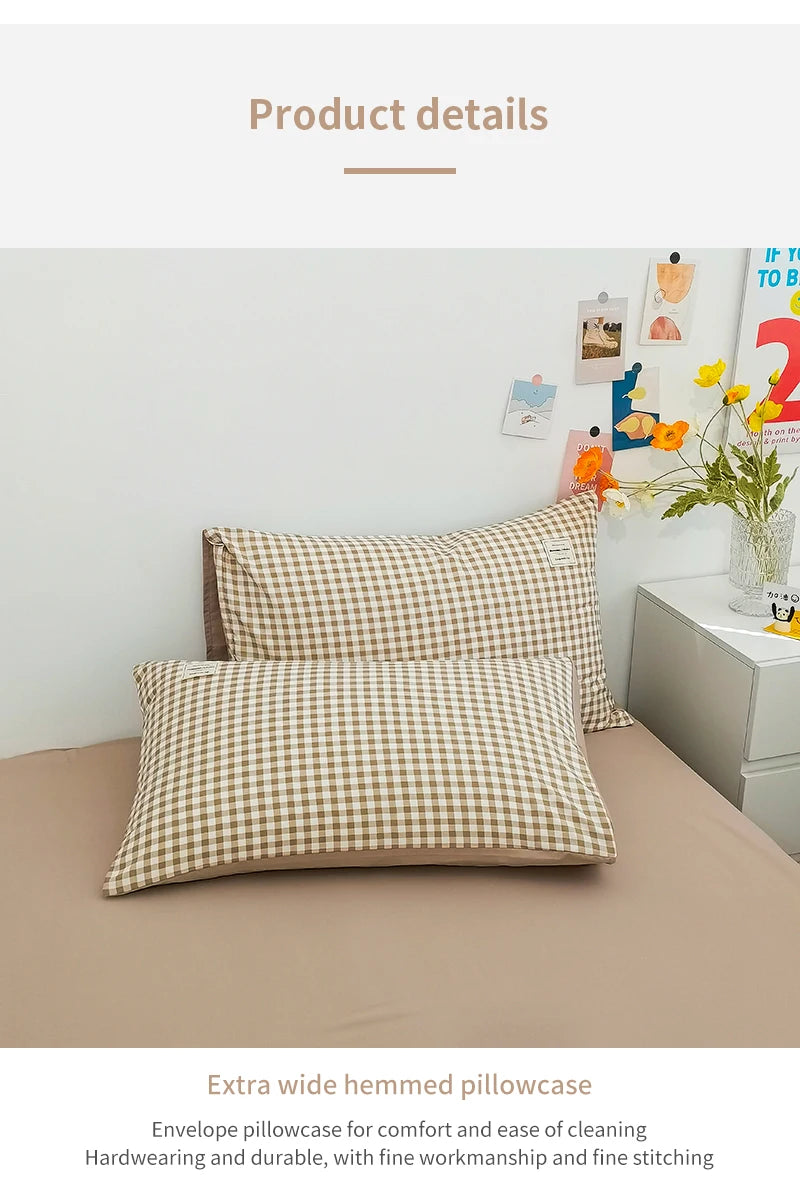 100% Cotton Duvet Cover Set,Bedding Set With Plaid Stripe,Skin Friendly Breathable,1 Duvet Cover,2 Pillowcase,Japan Simple Style