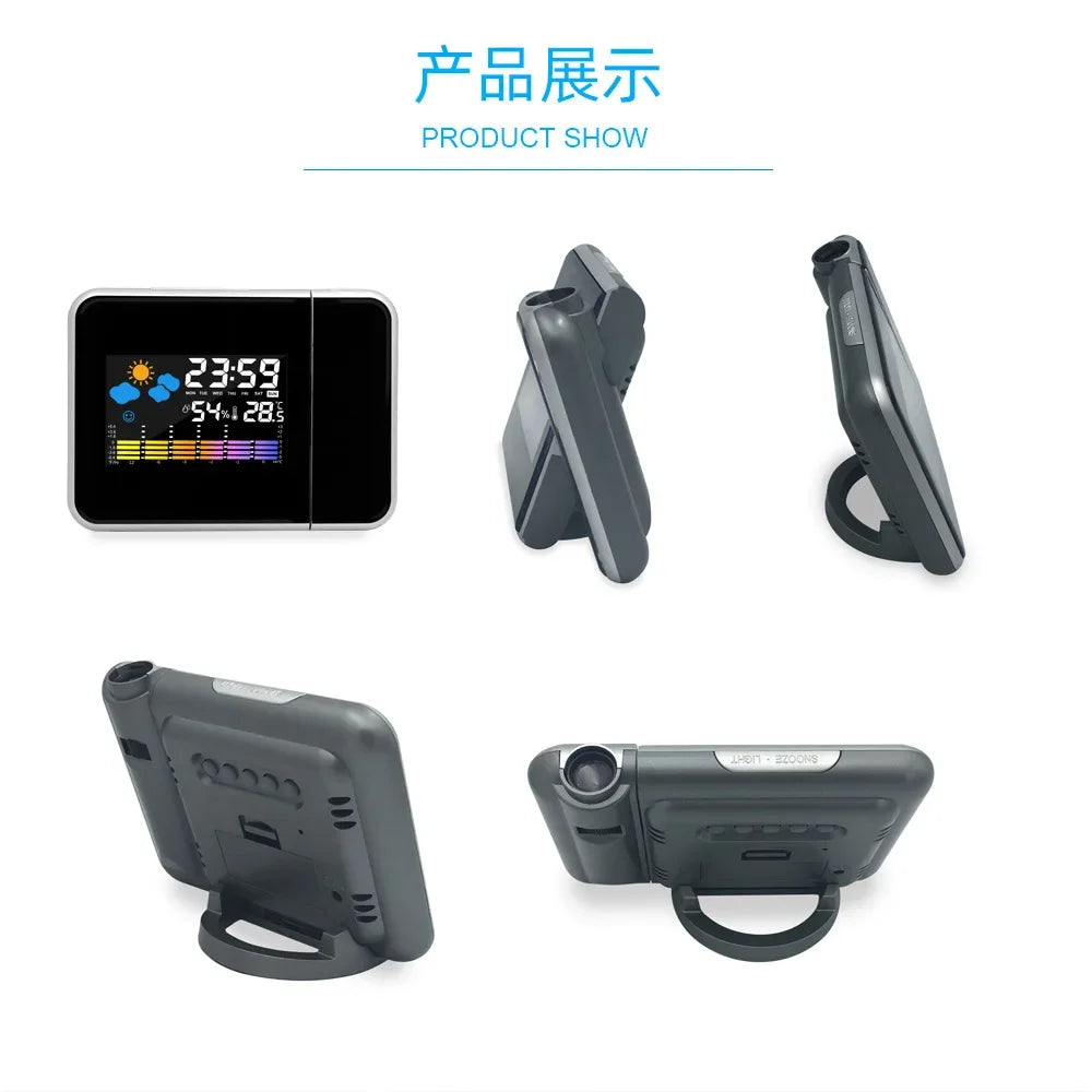 Color LCD Digital Projection Alarm Clock Temperature Thermometer Humidity Hygrometer Desk LED Time Projector Calendar