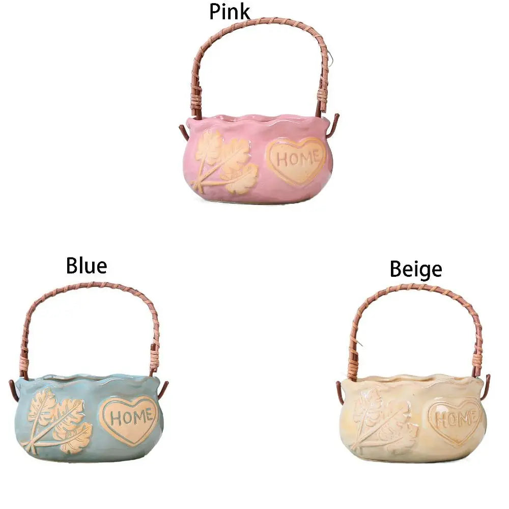Corrosion-resistant Ceramic Succulent Planter With Handle Breathable Creative Flower Pot Decorative Nordic Flowerpot Ornament