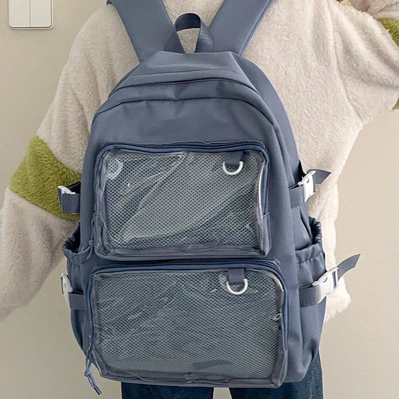 Perfect for anime lovers and cosplay fans! This stylish and functional backpack features a clear front panel to proudly display your pins, keychains, and collectibles. With a large-capacity interior, it’s ideal for comic cons, school, or everyday use. Designed in trendy JK fashion, it’s a must-have for college students and girls who want to show off their fandom in style.