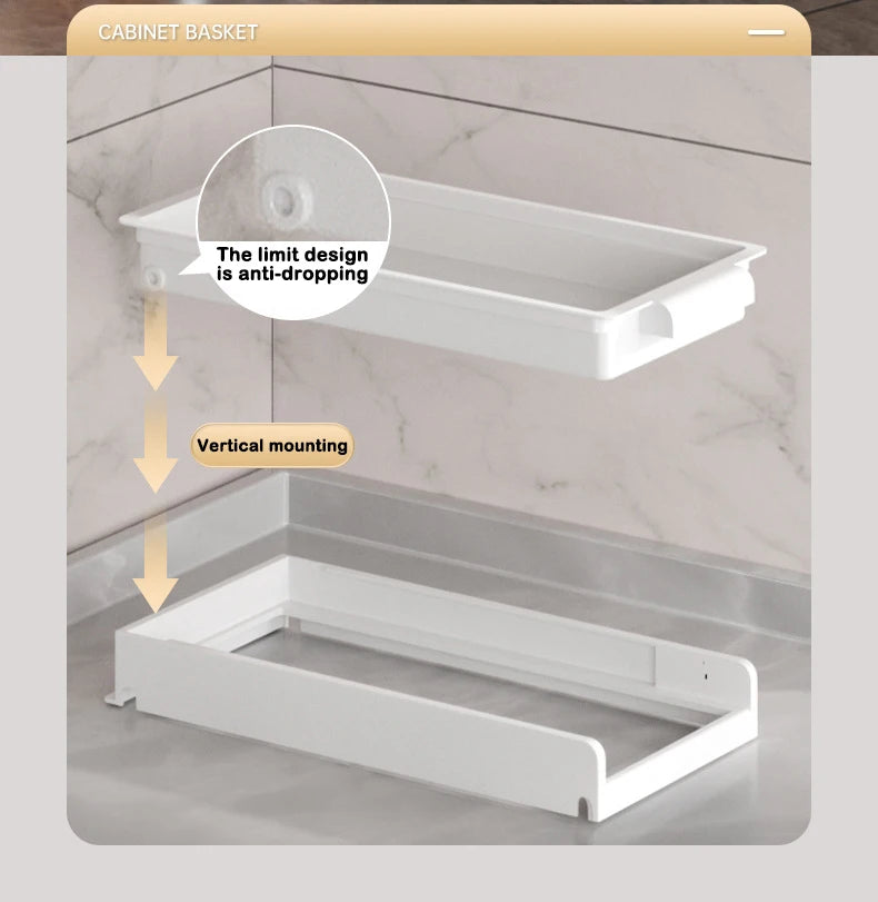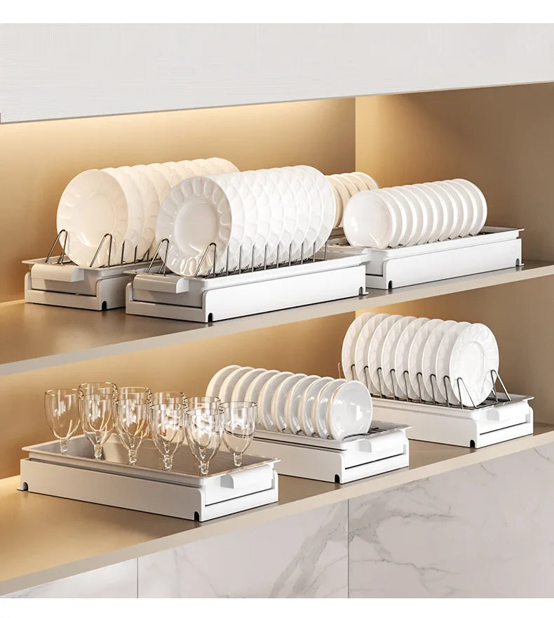 Kitchen Pull-Out Dish Rack with Drainboard – Sliding Mesh Cabinet Basket Organizer for Drawer Storage & Accessories