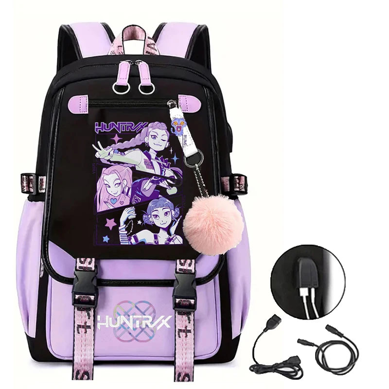 A must-have for K-Pop Demon Hunters fans! This large-capacity student backpack is perfect for school or travel, featuring a bold, fan-inspired design. With spacious compartments, durable materials, and comfortable straps, it’s ideal for carrying books, tech, and everyday essentials in style. A great gift for girls and K-pop lovers!