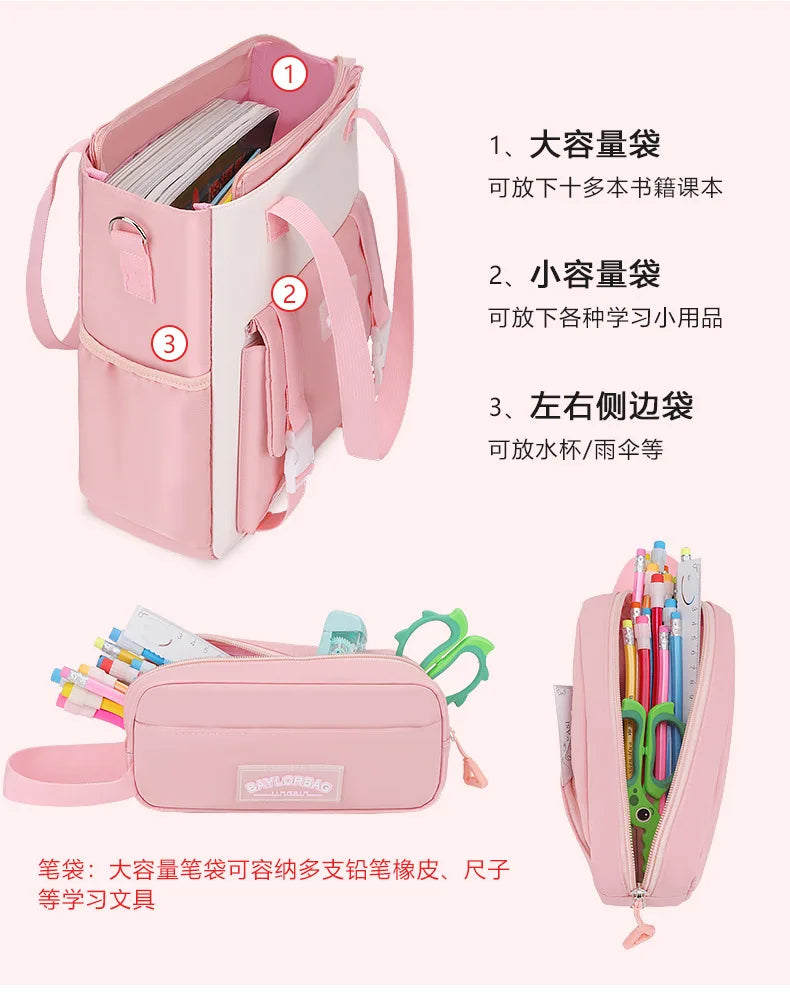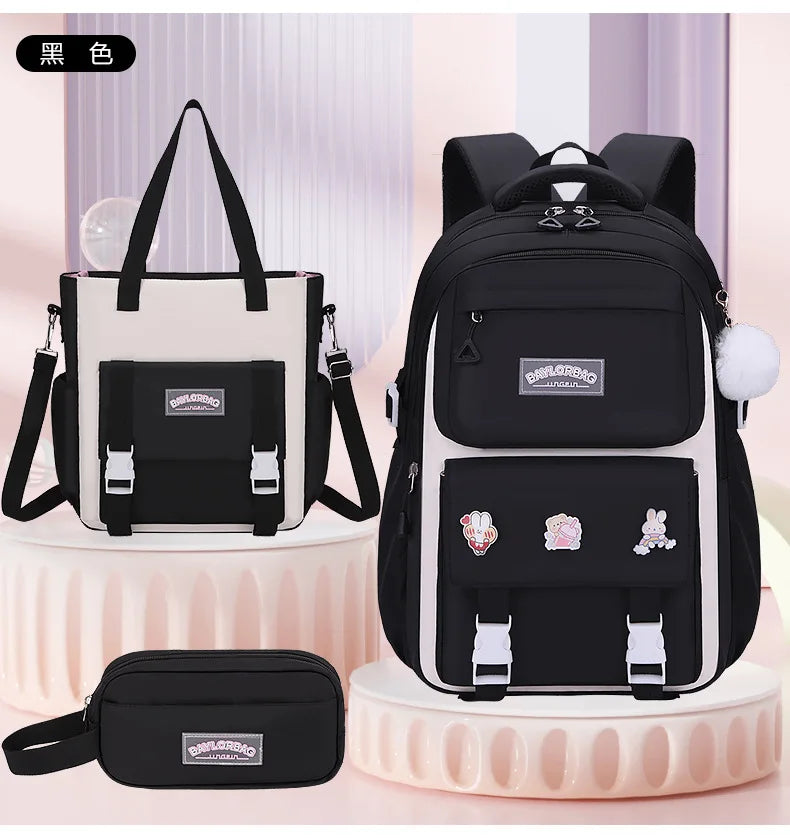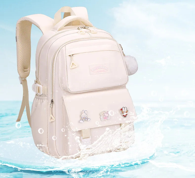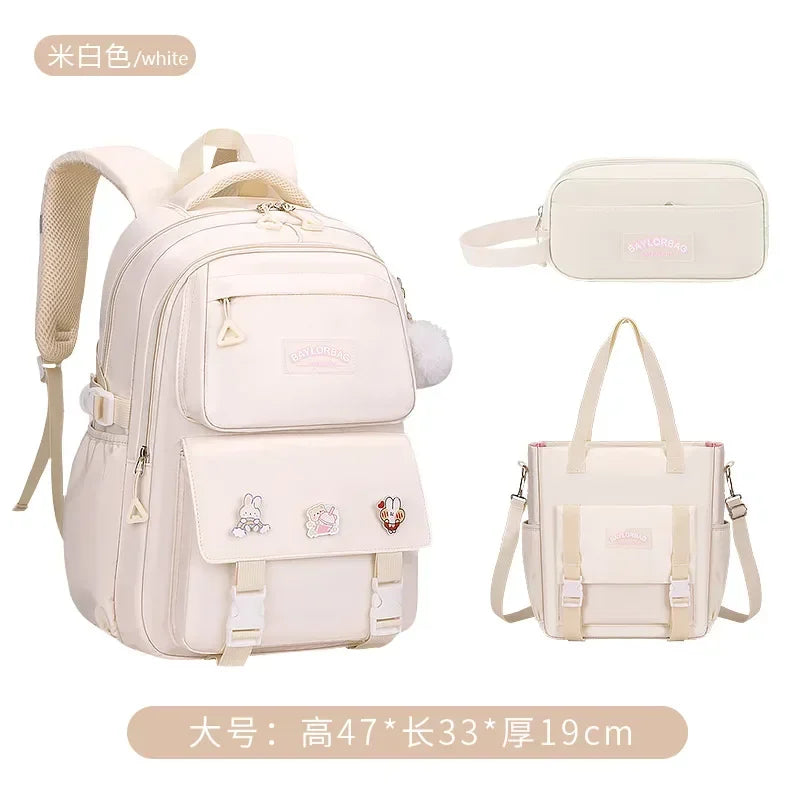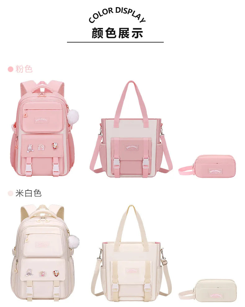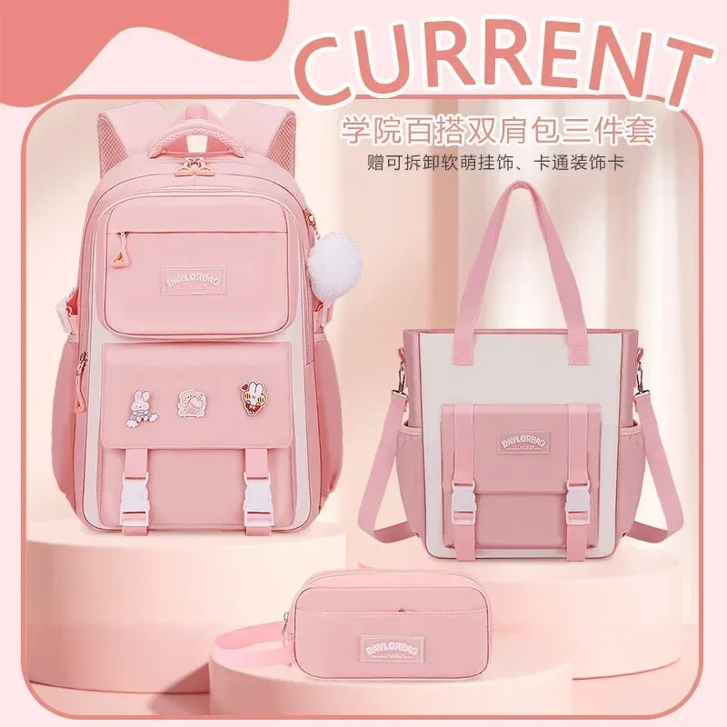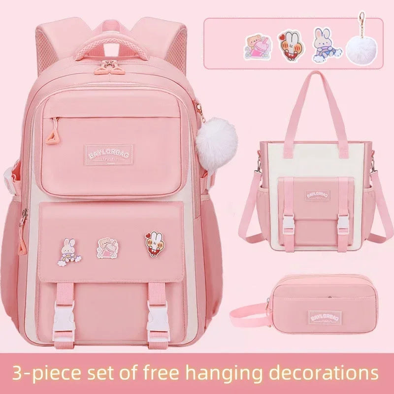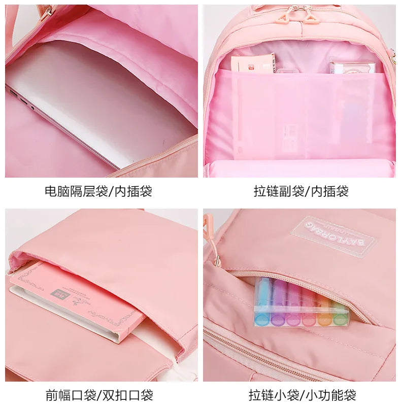 Designed for middle and high school girls, this stylish backpack combines comfort and function. Featuring an ergonomic, spine-friendly design to reduce strain, it offers ample space for books, laptops, and daily essentials. Comes with cute hanging accessories for a personalized touch—perfect for school and beyond!