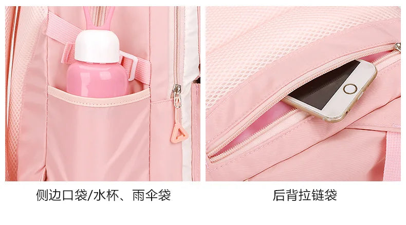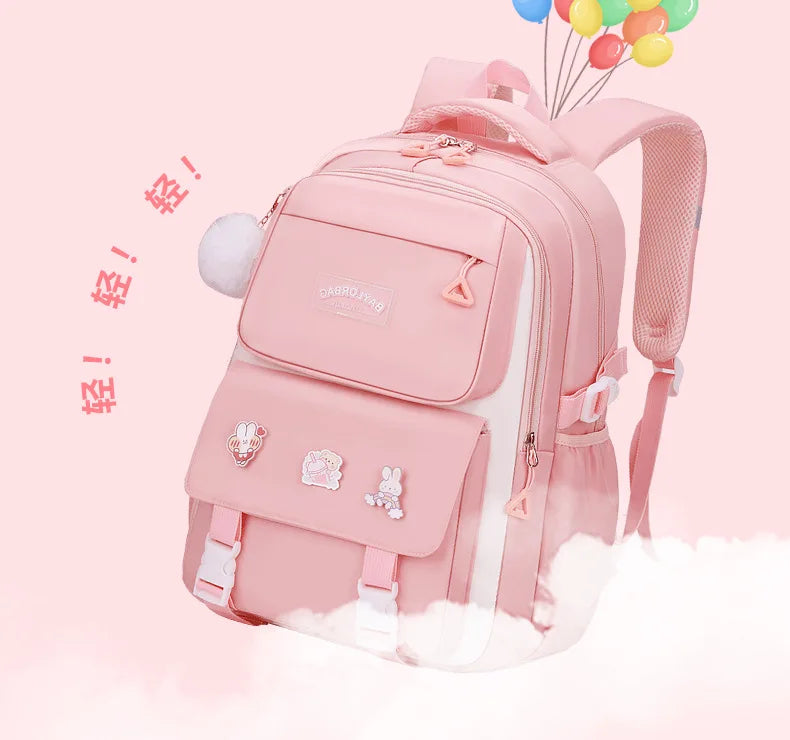 New Pink Large Capacity Spine Protection Backpack for Middle and High School Students with Hanging Accessories Girls Children's