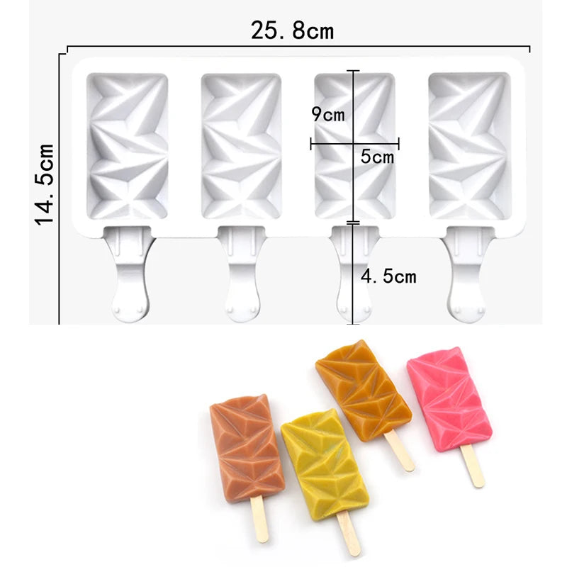 Create fun, diamond-shaped ice cream or cake pops with this silicone popsicle mold. Perfect for homemade frozen treats and heart-shaped cakesicles, it’s easy to use, flexible, and comes with wooden sticks for a complete DIY dessert experience.