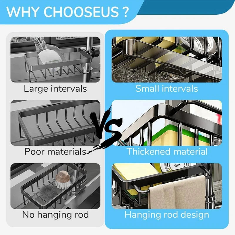 Keep your sink area tidy with this Hanging Faucet Sponge Holder Drain Rack. Featuring a strong load-bearing design and built-in hook, it easily attaches to your faucet to hold sponges, scrubbers, or cleaning tools. Its open-drain design ensures quick drying and hygiene, making it a must-have kitchen sink organizer.