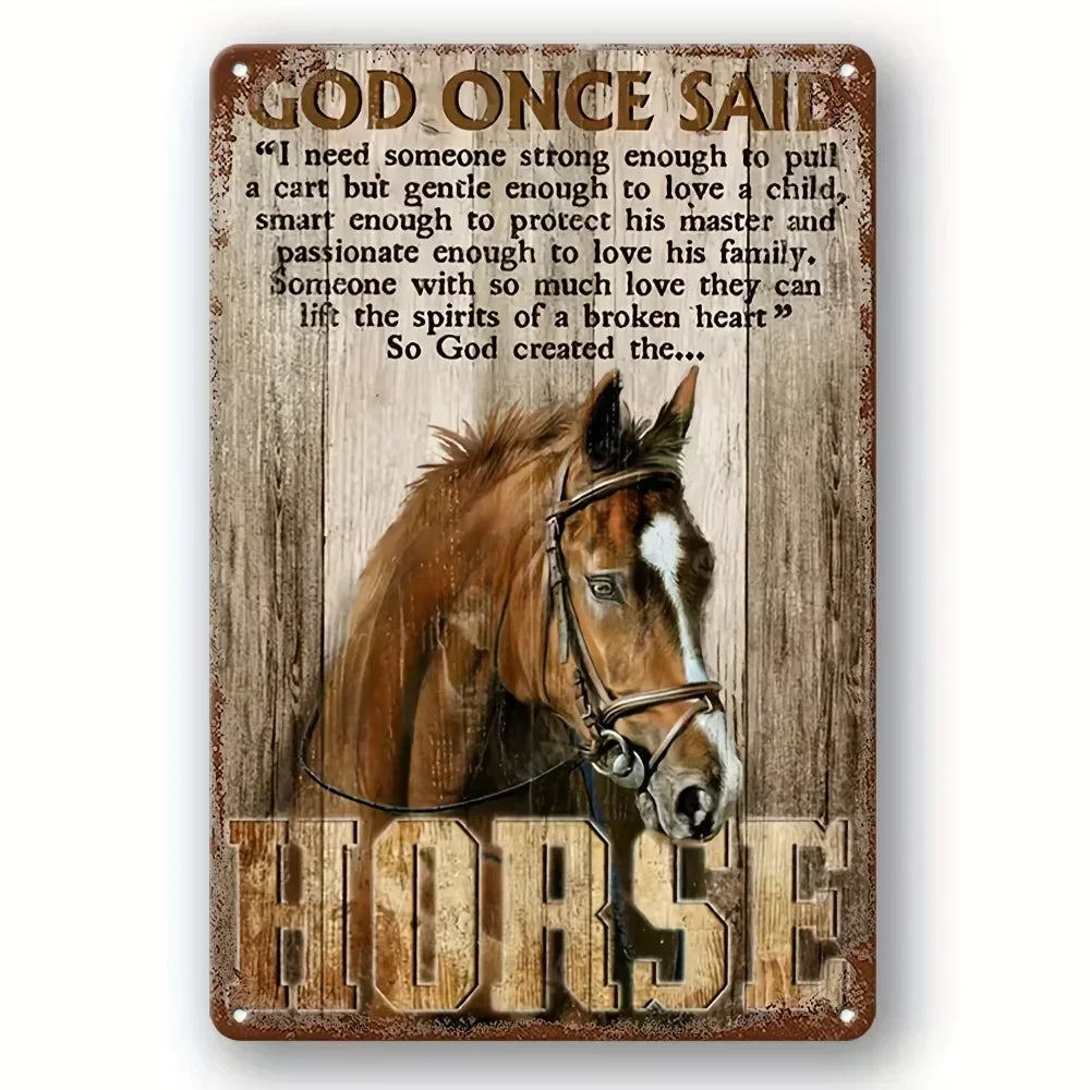 Superior "God Created Horses" Charming Sign: Constructed from Retro Metal, It's a Prime Wall Decor Item for Bars, Homes&Beyond